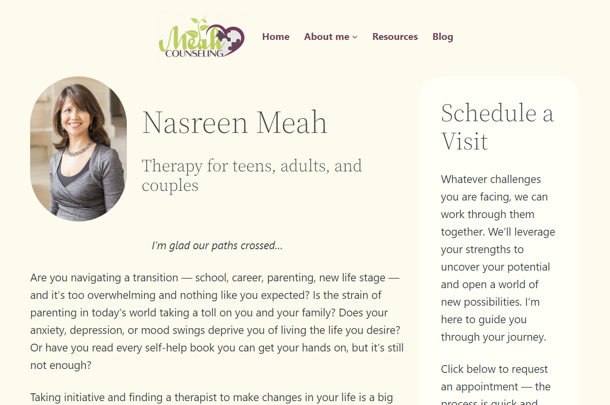 Website for local licensed therapist using WordPress with custom theme, enabling easy maintenance.